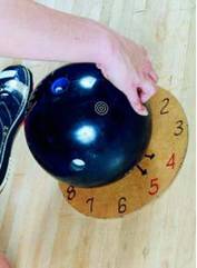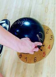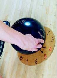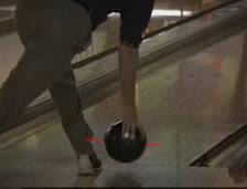 Na foto acima repare que a bola está na mesma linha da cabeça (aplicado na Escola Americana de Bowling). Os dedos dentro da bola mostram que o pulso está cocked e está cupped (dobrado e em forma de concha), Pressionando, para poder suportar o peso da bola…