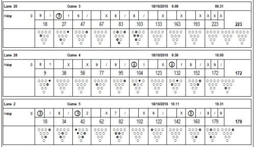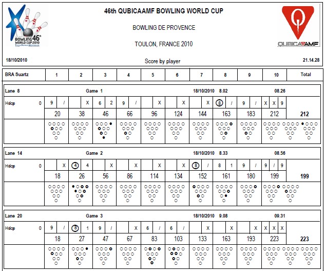 Nesse primeiro dia, o brasileiro Marcelo encontrou nada menos que 9 splits nas 5 partidas que jogou, o que não permitiu que fechasse com uma boa média. Confiram as partidas frame a frame: