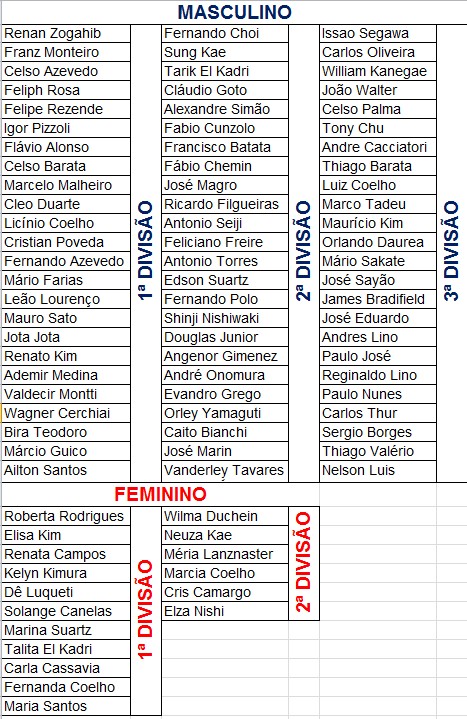 + caso se consiga montar uma divisão especial com 6 atletas, serão 66 participantes no turno da manhã com um par de pistas como reserva.