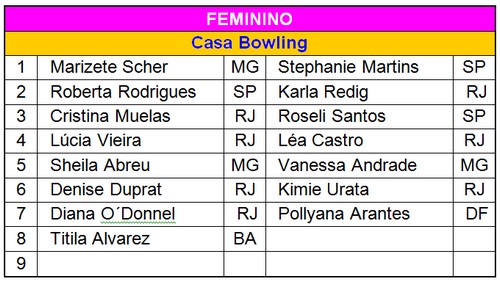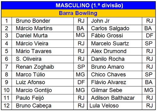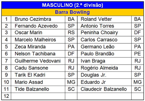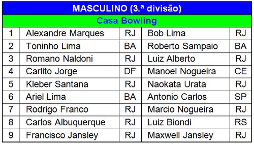 Comunicado 02 – 17.maio.2011 da Federação de Boliche do Rio de Janeiro. A FBRJ divulgou as divisões e os horários a todos os atletas inscritos na XXII Taça Rio – 2011, cujas condições foram divulgadas através do Comunicado 01.