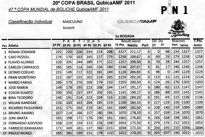 Classificatória para a 47.ª Copa Mundial de Boliche QubicaAMF – 30/novembro a 7/dezembro de 2011
