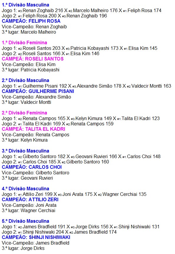 Gostaria de parabenizar todos os vencedores de medalhas em todas as divisões, um bom campeonato , muito disputado. Especial congratulações ao nosso “veinho”, “pino 5”, Attilio Zeri, lutando bastante contra os mais jovens,,,,,rsrsrss. Abraços grande Presidente.