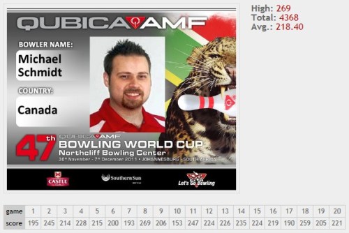O bicampeão canadense (2005/2010) Michael Schmidt conseguiu se classificar entre os Top 24 com 4368 pontos (218,40), mas está a 221 pontos do oitavo colocado (o sul-africano François Louw com 4589 / 229,45), portanto a sua missão de superar a próxima fase está quase impossível, pois todos os 24 carregam os pontos conquistados até agora.