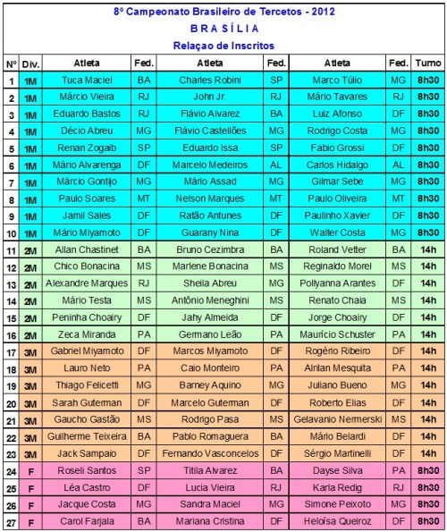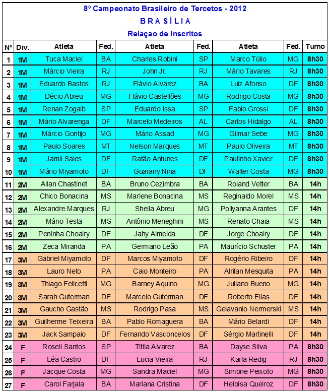 A relação dos inscritos que irão jogar em Brasília, até a presente data ,é a seguinte: