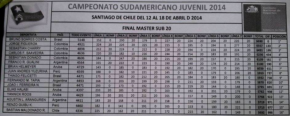 Bruno Costa fechou sua brilhante jornada nas pistas chilenas com mais uma medalha (PRATA) na Fase Master. Ele conquistou seis medalhas, PRATA na Fase Individual, PRATA na Fase de Duplas (com Thiago Felicetti), OURO na Fase de Tercetos, PRATA no All Events de Países e OURO no All Events Individual.