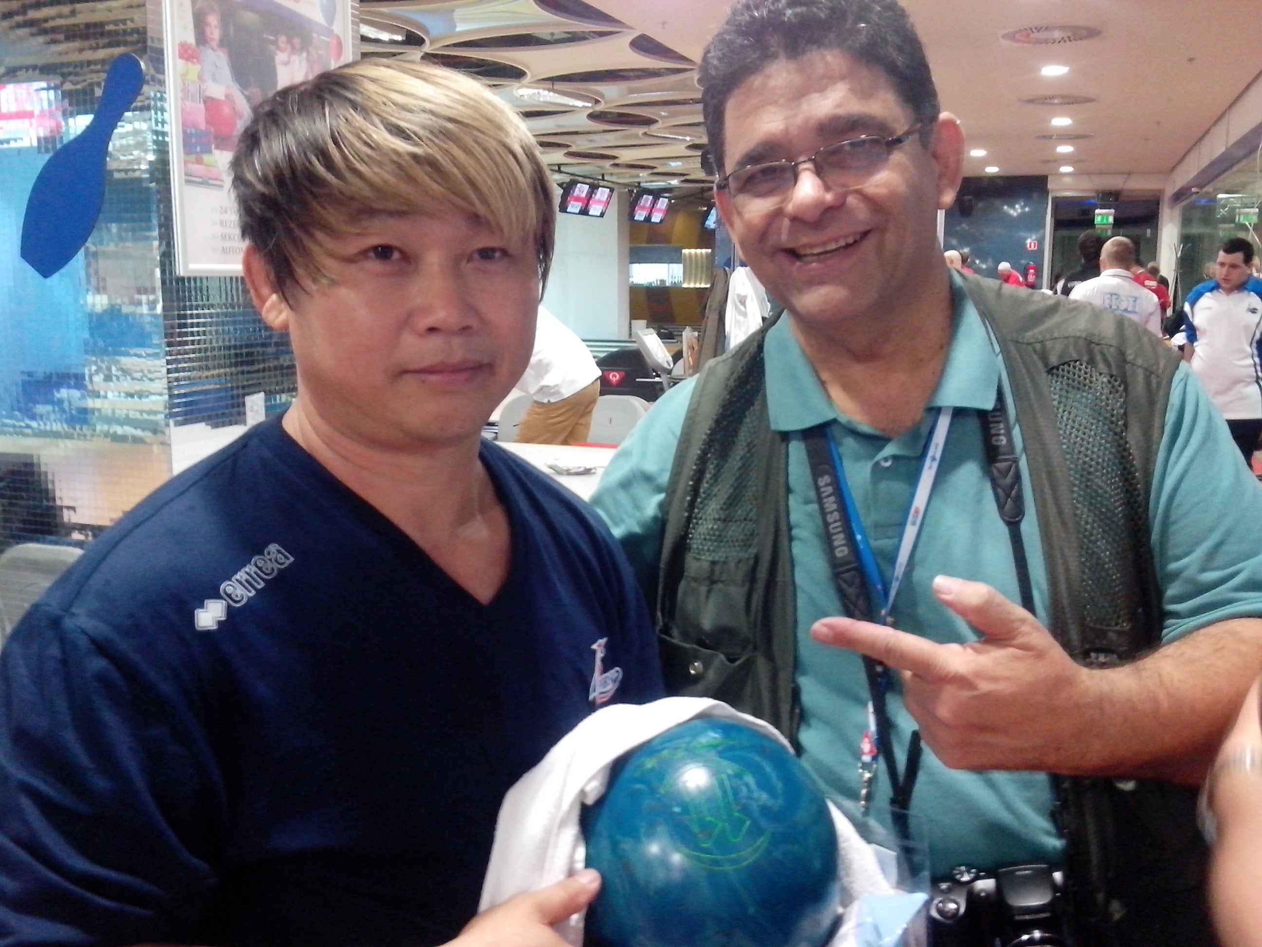 Interrompemos nossa animada conversa pois eu estava de saída para o boliche, para acompanhar os competidores brasileiros, Neuza e Renan, num treino livre à tarde.